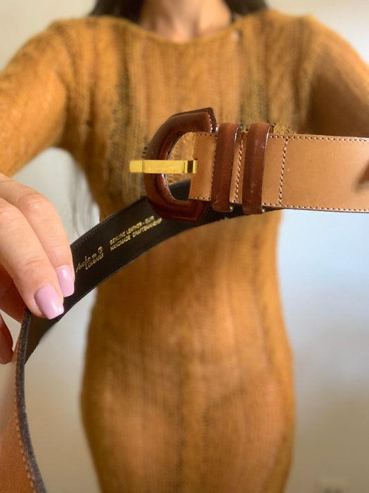 Ceinture vintage Angelo de Lombardi en cuir beige et marronPrix habituel €19,00 EURPrix habituelPrix unitaire / par-