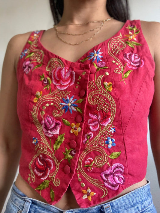 Veston / gilet rouge brodé Kenzo vintage 80’s