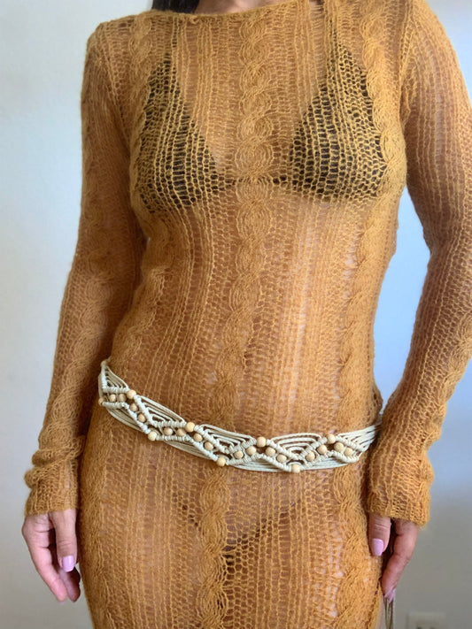 Ceinture vintage Angelo de Lombardi en cuir beige et marron