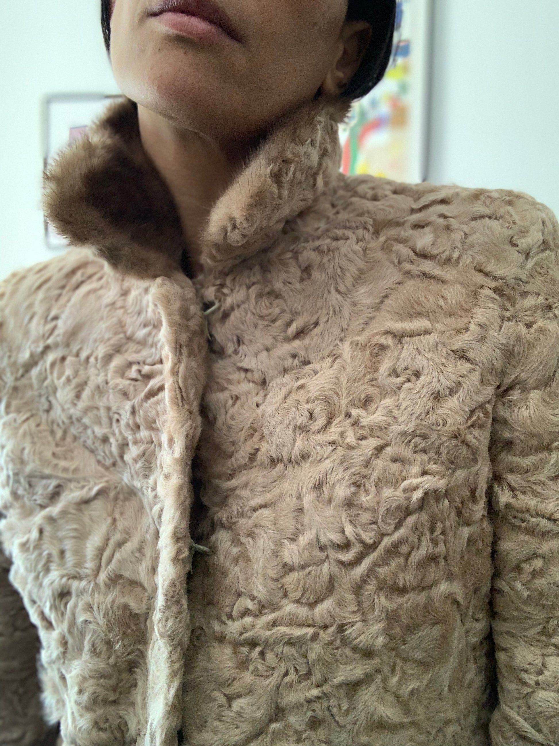 Magnifique veste en fourrure vintage beige. Tailles XS et S idéales (le mannequin porte une taille M). Entièrement doublée. Très bon état.