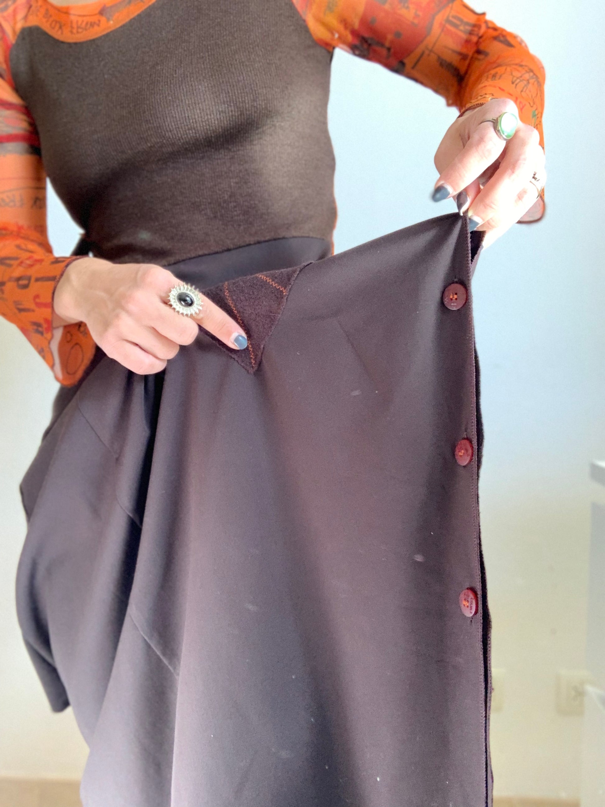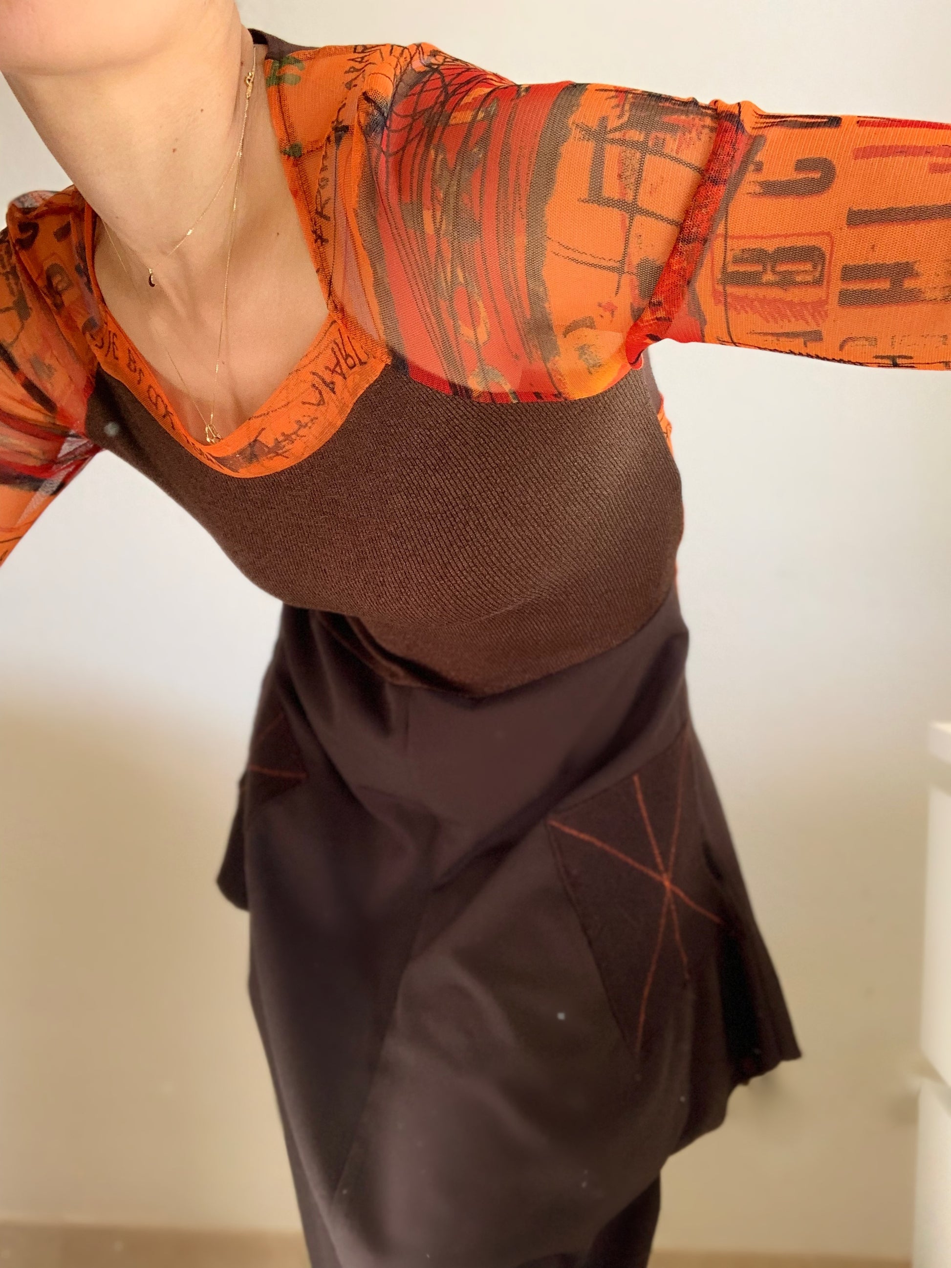 Magnifique robe vintage des années 2000, mélange de mesh et d'autres matières, orange et marron. Très bon état !