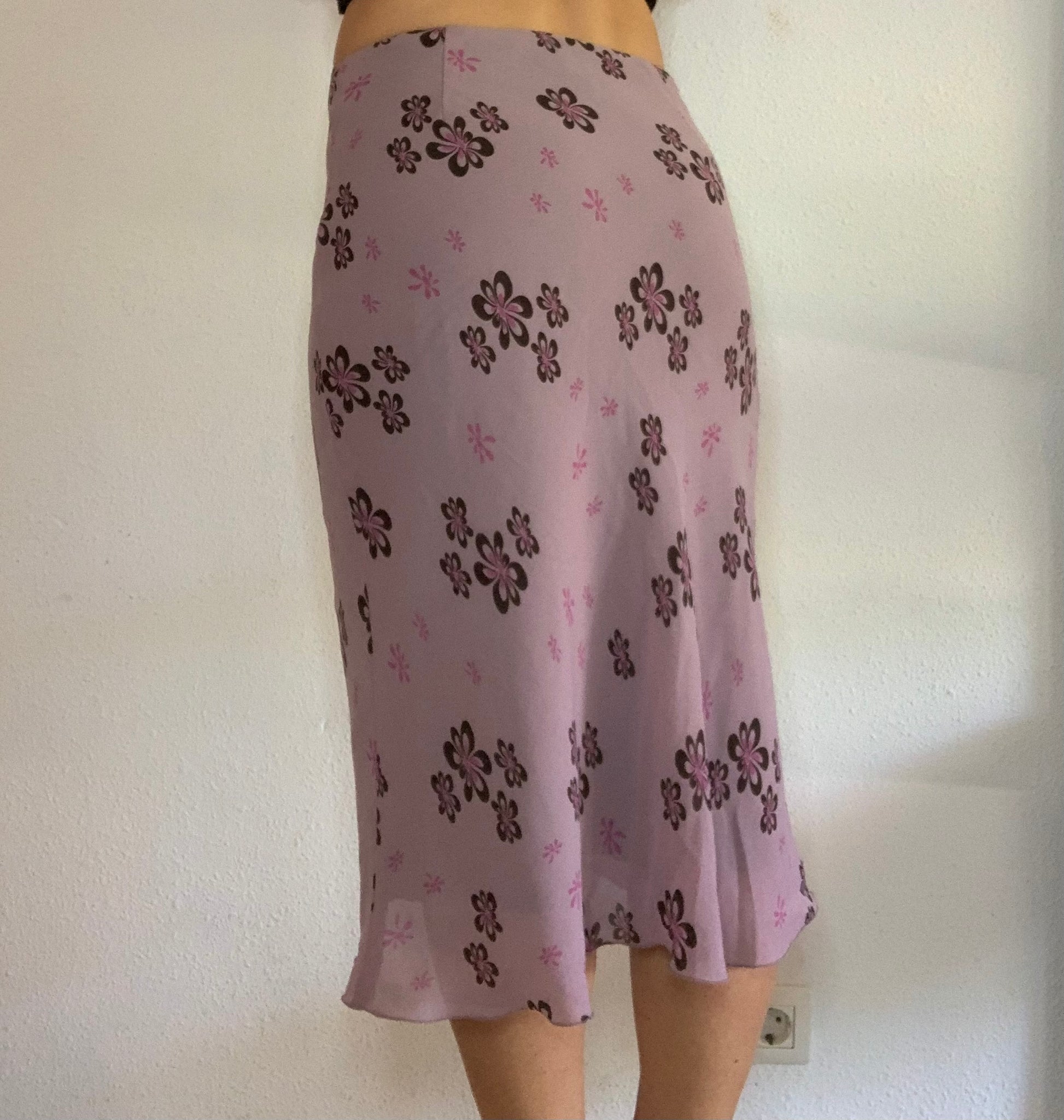 Superbe jupe lilas des années 2000 à imprimé floral de chez Zara. Taille S selon moi. Ancienne taille 38. Très bon état.